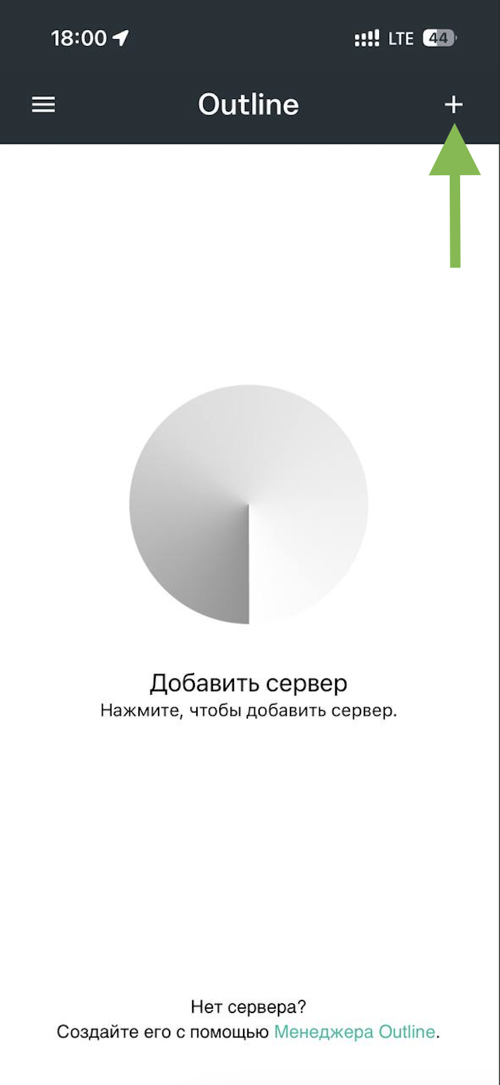 Нажмите на кнопку «+» в правом верхнем углу