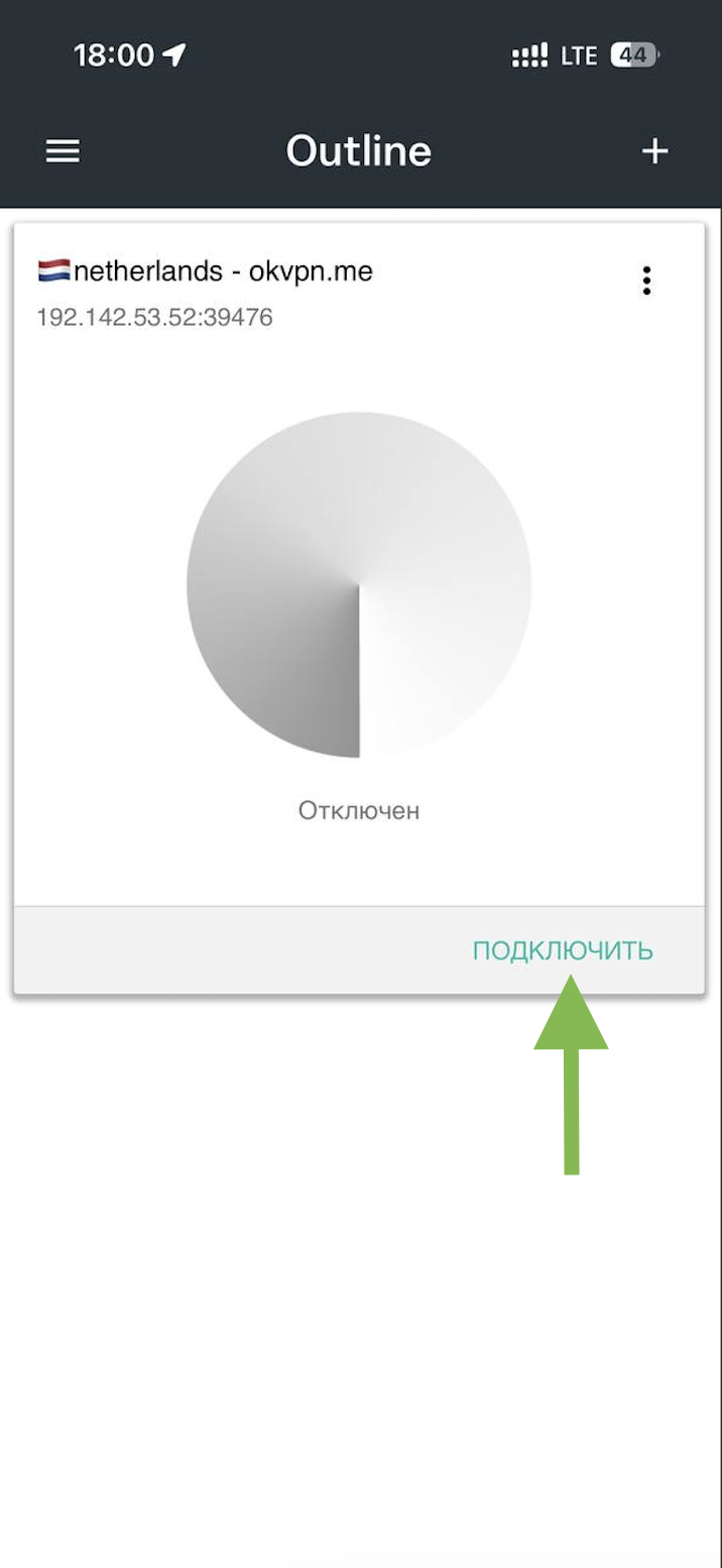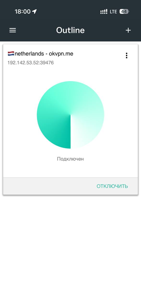 Вы успешно вставили ключ. Нажмите на кнопку «Подключить», чтобы включить VPN. Чтобы отключить — нажмите на кнопку «Отключить»